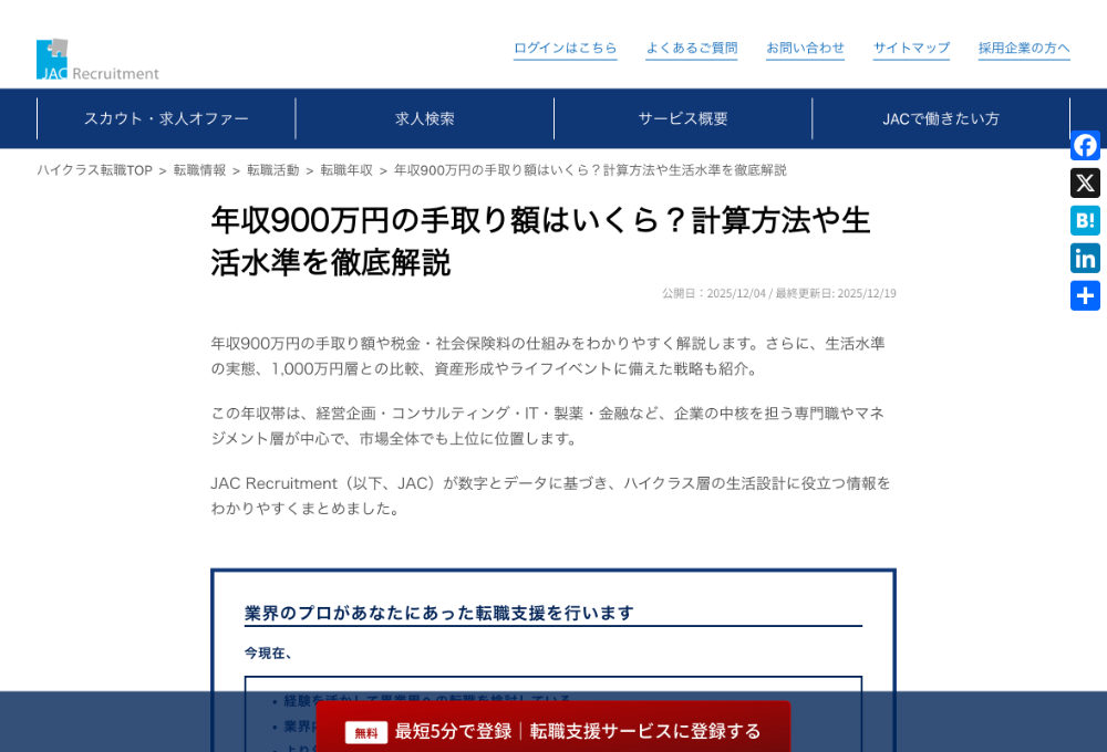 メディア実績 年収900万円の手取り額はいくら?計算方法や生活水準を徹底解説 2025年12月22日 2025年12月22日 haratakazuhiko 「JAC Recruitment」にて中村監修の記事が掲載されました。以下リンクよりご覧下さい。 外部サイト年収900万円の手取り額はいくら?計算方法や生活水準を徹底解説